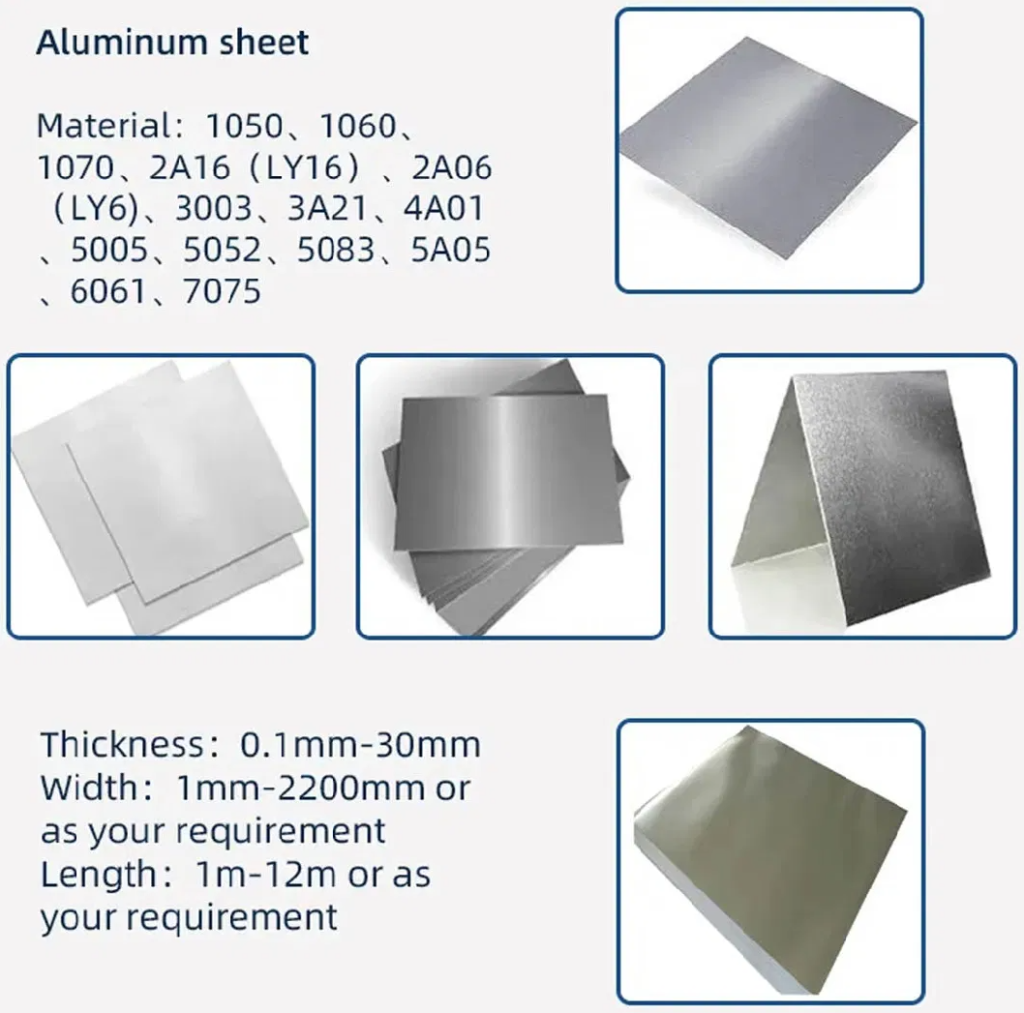 1050, 1060, 1100, 2A12, 2004, 3003, 5052, 5083, 5754, 6061, 7075, 8011, etc.